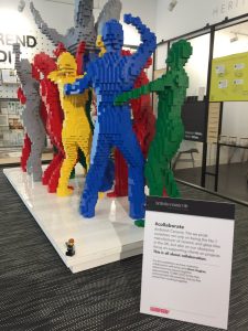 David Hughes’ large scale lego sculpture communicating the positivity and joy that comes from working together.