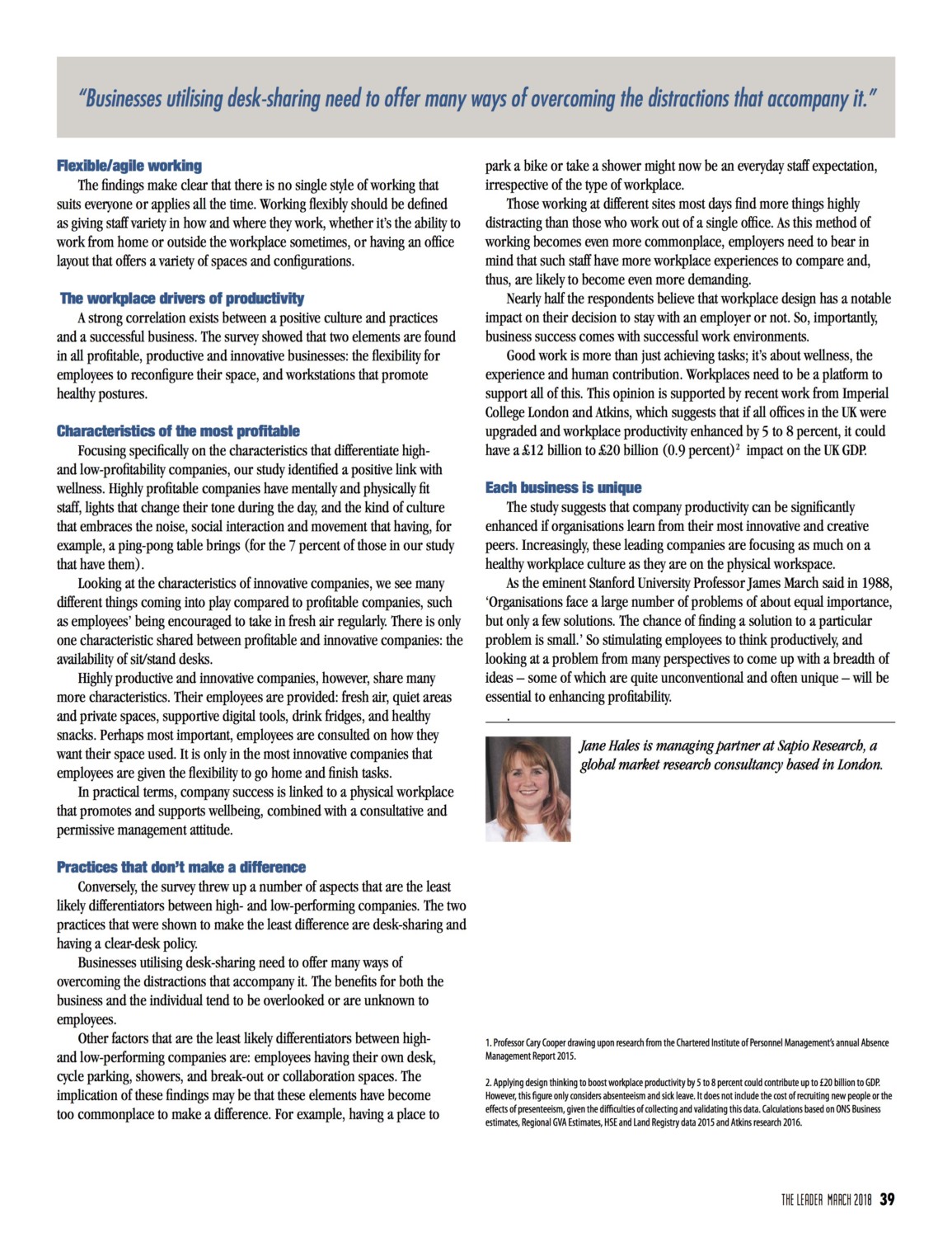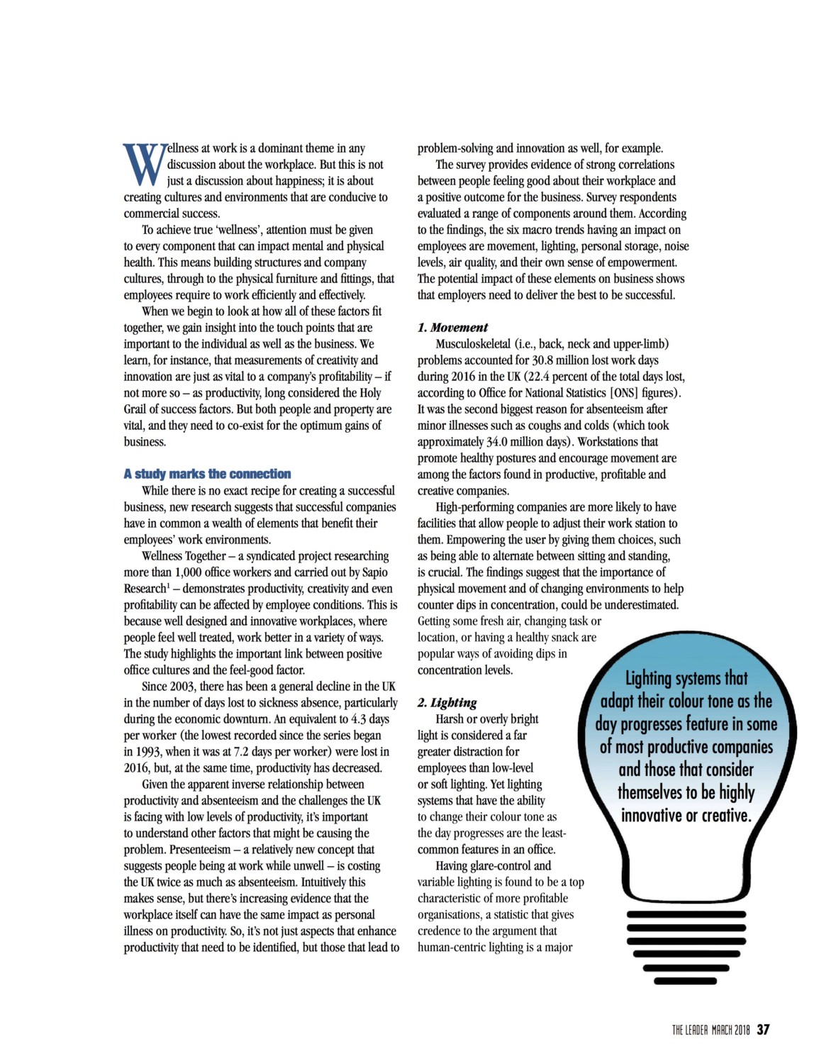 CoreNet published an article by Jane Hales last week, outlining the Wellness Together research results, in their magazine The Leader, which goes out to its 9000 members.