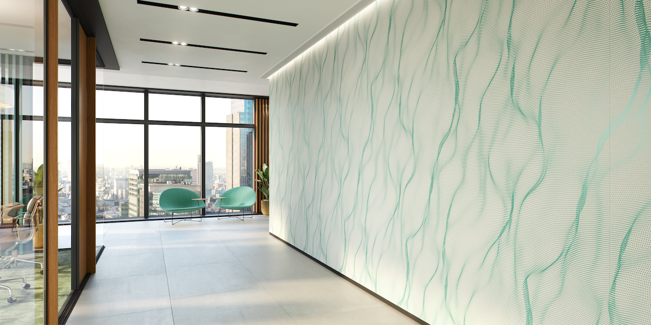 Muse Cloudy, Muse Fluid and Muse Mineral are large-scale wallcoverings that can be used to help control acoustics in open interior spaces, creating beautiful and calm environments. Young utilised algorithms to create the beautiful, flowing designs: “By setting up an animated algorithm we generated a changing two-dimensional pattern and freed the animation at a particular point to build the final image. In other words, we are not creating a conceptual decoration but a technical decoration”.