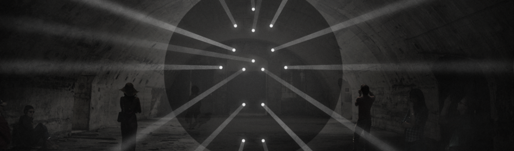 Bodies in Motion applies 21st century technology of digital projection and sensors to collect and communicate data through 15 beams of light that project across the space in a striking visual display.