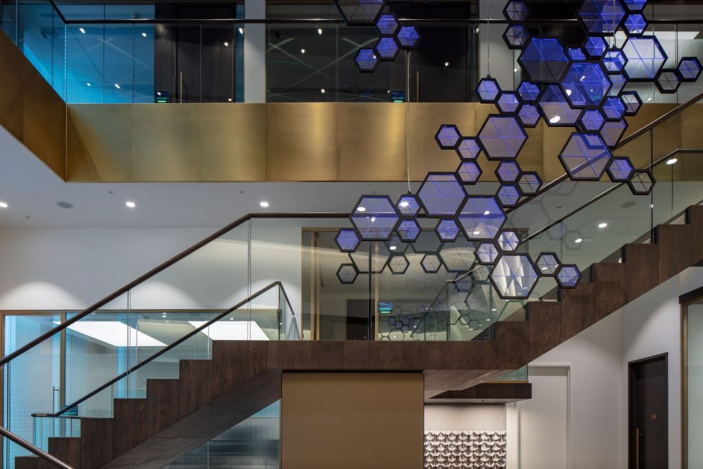 GAM required an environment that would reflect the aspirations of the business, as a global leader in its field, which is evident in the specification of design and quality of the build. The ground reception incorporates a split mezzanine and a feature staircase linking the ground, mezzanine and first floor meeting room areas, actively promoting movement throughtout the space.