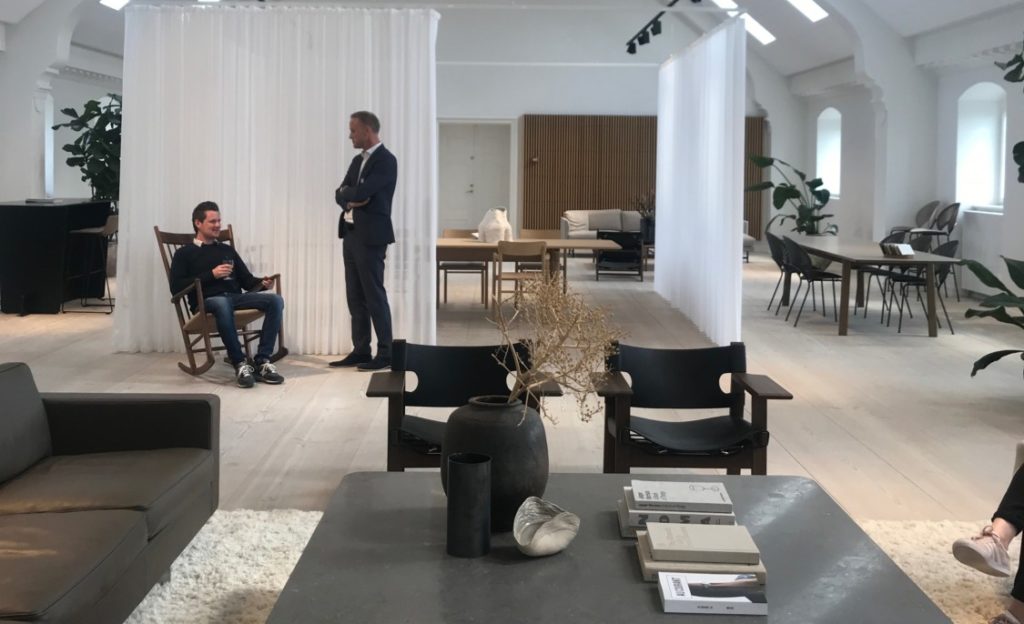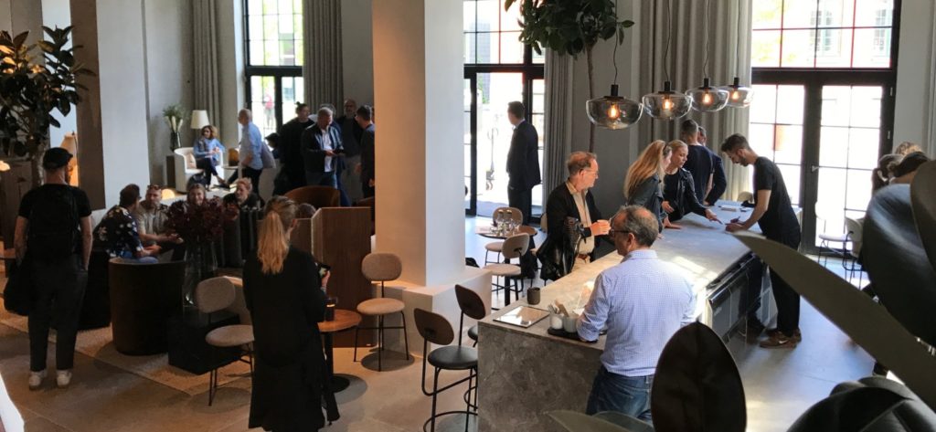 I began the trip with a walking tour, learning about the city’s history and the areas where I’d be exploring the design week. The first memorable stop was at Denmark’s National Bank. Designed by Arne Jacobsen, the structure is bold and confident within its setting. The youngest building to be listed in Denmark, it provides a fortress-like home for Denmark’s economy. The building is highly considered yet has no notable decoration. This refined approach is a great representation of the simplistic Danish design style. Inside, the vaulted reception space is dramatic yet calming. Light creeps in and illuminates the Arne Jacobsen designed Fritz Hansen Swan chairs and the steel stairway which creates a theatrical sense of scale. Coming from an Architectural background with a passion for furniture design, I’ve always been driven by the concept that all elements need to be considered together for a scheme to work. Mies Van Der Rohe’s Barcelona Pavilion is a masterpiece of design because the architecture, interiors and furniture were all designed together.