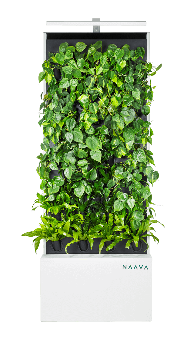 Not just another green wall, Naava is a unique piece of smart furniture which combines nature and technology to naturalise indoor air, reducing harmful chemicals and optimising humidity. The proven effect of working in the vicinity of a Naava Green Wall include a reduction in illness, less fatigue and improved cognitive performance. The product works by absorbing indoor air through the plants’ roots and a natural soil-less growth medium, developed to avoid pests and mould. The microbes of the roots then purify the air of harmful chemicals, and small, quiet and unseen fans return the pure and naturalised air back into the room. One Naava vertical planter can purify up to 60sq metres of indoor air and would be the equivalent of having approximately 6,000 potted plants in the same space.